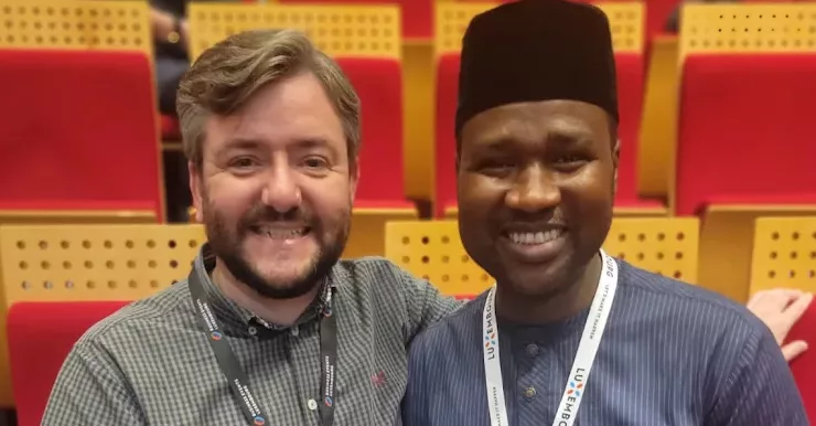 Humanists UK representatives were delighted to meet Mubarak Bala in person in Luxembourg following the success of a years-long international campaign for his release from prison in Nigeria. He had been imprisoned on charges of ‘blasphemy’ in retaliation for his outspoken humanism. Humanists UK had organised public protests, held high-level meetings with the Nigerian High Commission and the UK Foreign Office, and secured over 50 parliamentary mentions of his case, with more at the United Nations. At the end of 2024, Mubarak was successfully relocated to Germany with support from Humanists UK’s sister organisation Humanistische Vereinigung.